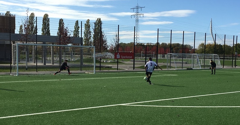 Im zweiten Spiel der Vorrunde waren wir gegen das Heinrich Hansjakob-Bildungszentrum Haslach unter Druck. Doch die Mannschaft war hellwach und ging früh in Führung. Fynn wurde im Strafraum so klar getroffen, dass das Foul bis zum Kanadaring gehört werden konnte. Der souveräne Schiedsrichter Jan Mussler pfiff Elfmeter, den Mattis Gissler ebenso souverän verwandelte. Leider vertändelten wir kurz darauf im Spielaufbau den Ball, sodass unser Torwart Daniel Smirnov in höchster Not an der Außenlinie retten musste und Ball und Gegner traf. Nachdem der Haslacher Stürmer minutenlang behandelt werden musste, ging das Spiel weiter und Mirko Zimmermann sorgte mit dem 2:0 für klare Verhältnisse. Im weiteren Verlauf gab es Riesenchancen das Ergebnis auszubauen, doch es bleib dabei.