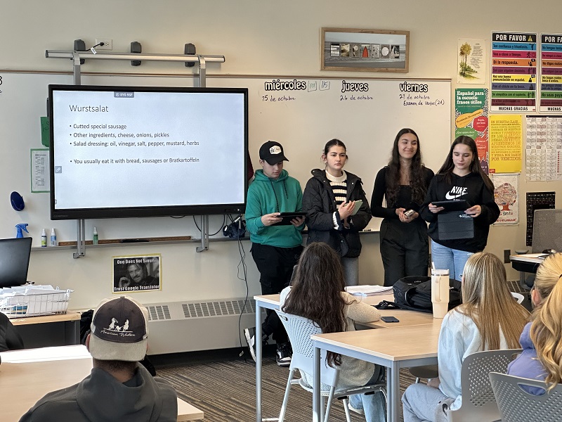Nach dem langen Wochenende hielten einige von uns vorbereitete Präsentationen über verschiedene Themen, wie zum Beispiel German Food oder German Slang, in verschiedenen Klassen. Im Anschluss kamen wir mit den amerikanischen Schülern und Lehrern ins Gespräch über Deutschland.