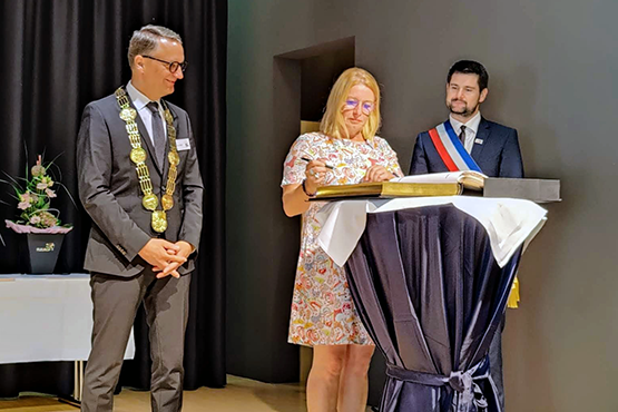 Marie Guillaume erhält die Partnerschaftsmedaille der Stadt Lahr