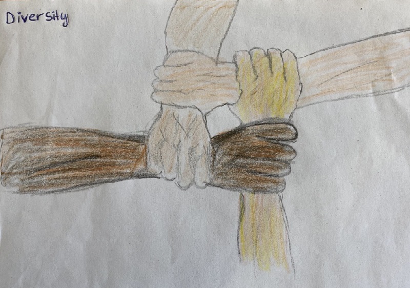 Im Rahmen der Auseinandersetzung mit multikulturellen Gesellschaften in der Welt beschäftigen sich die Englisch-Leistungskurse gerade mit Themen wie Rassismus, Toleranz, Zivilcourage und Offenheit. Wir fokussieren uns natürlich auf die USA und das Vereinigte Königreich, ziehen aber auch Vergleiche zu Deutschland und vielen anderen Ländern. Dabei entstand die Idee, das Thema „Diversity“ kreativ anzugehen, da in den Kursen sehr viel Phantasie, Reife und Talent vorhanden ist.