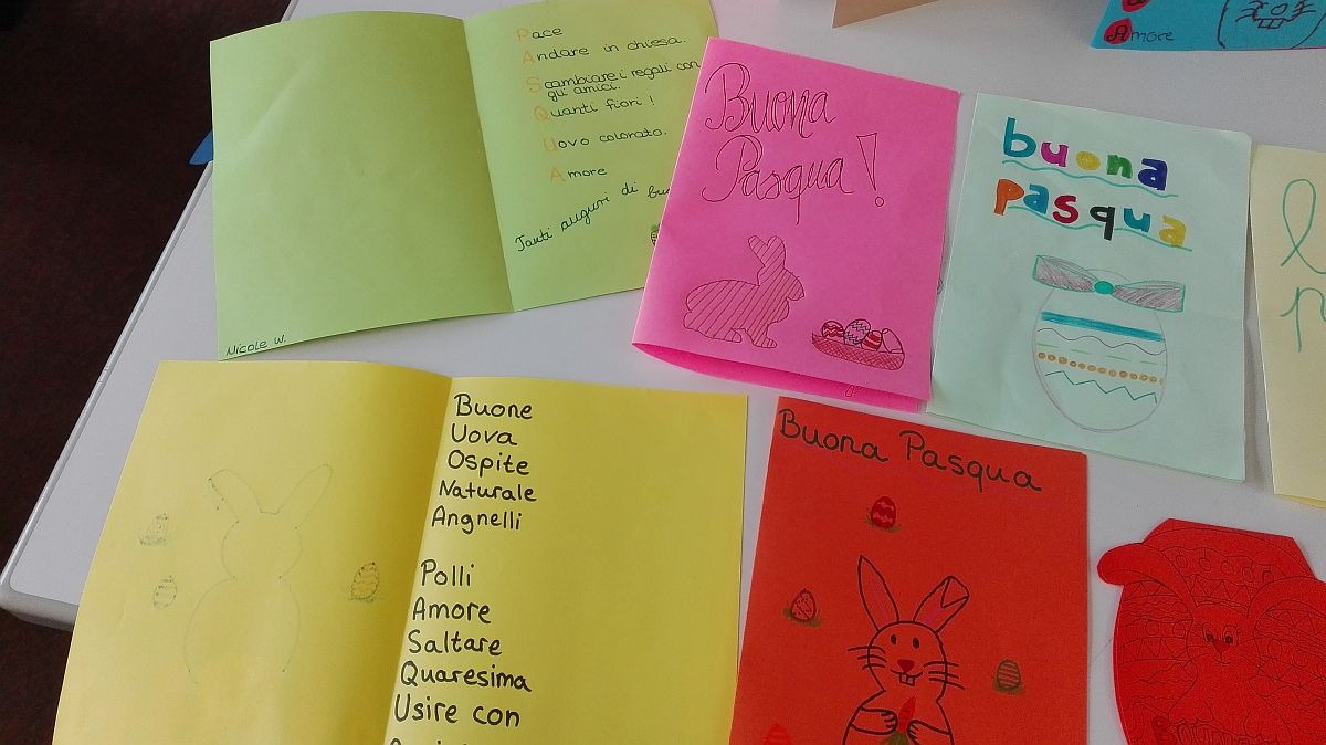 Italienisch-Schüler haben mit Frau Radaelli Grußkarten voller bunter Ostergrüße gebastelt.