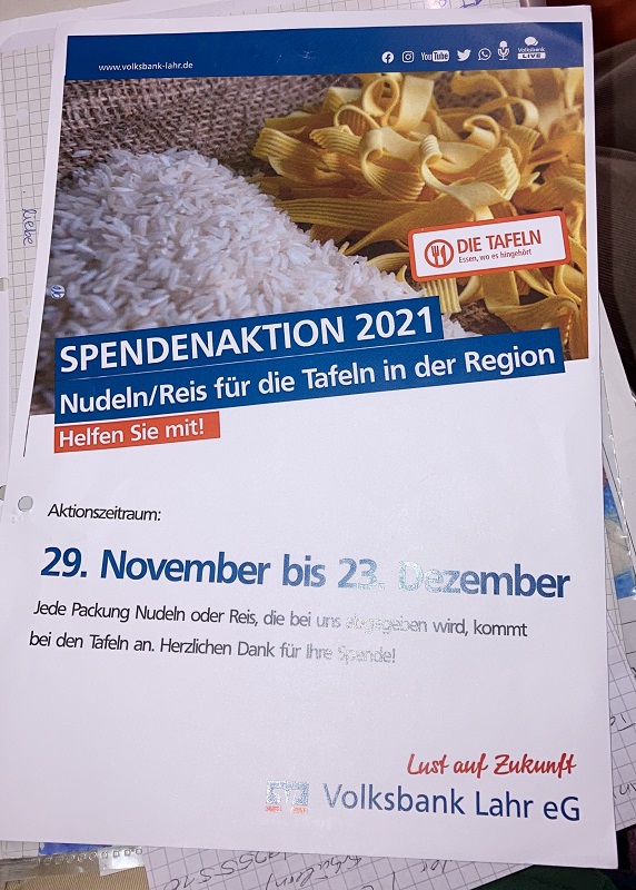 Das Scheffel hat an der Nudel- und Reis-Spenden-Aktion für die Lahrer Tafel teilgenommen und insgesamt 90 Packungen gesammelt.