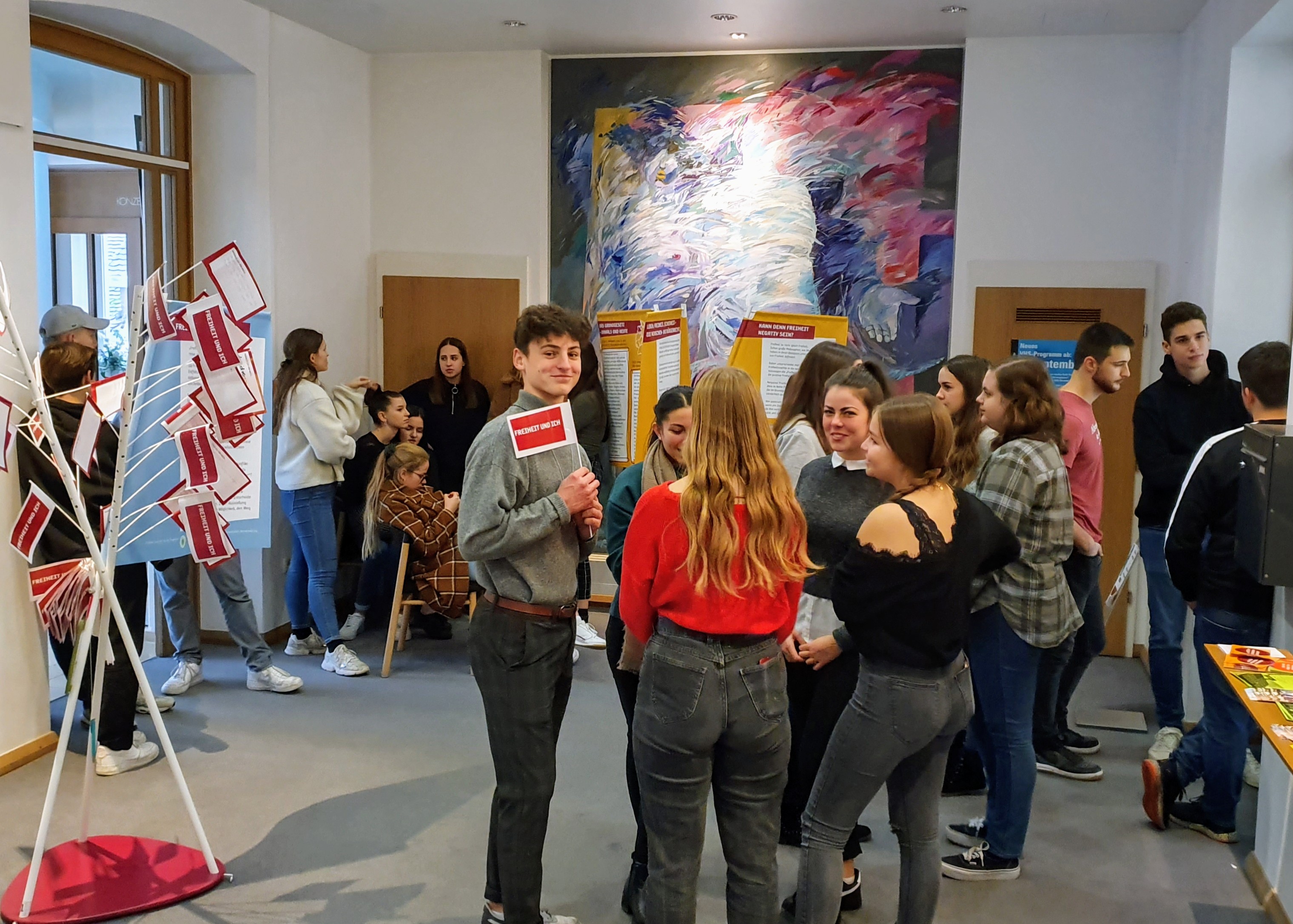 Die momentan in der VHS Lahr gastierende Wanderausstellung "Freiheit und ich" war das Ziel der Leistungskurse Gemeinschaftskunde und der Klasse 10a des Scheffel-Gymnasiums. Im Rahmen der Ausstellung, welche von der Nemetschek-Stiftung Stiftung in Kooperation mit der Volkshochschule angeboten wird, lernten die Schülerinnen und Schüler das Grundgesetz besser kennen, setzten sich in Diskussionen mit den Freiheits- und Persönlichkeitsrechten auseinander und debattierten zu Grundrechtskonflikten.