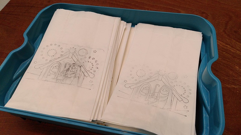 In der großen Pause durfte man sich, stimmungsvoll untermalt mit weihnachtlicher Klaviermusik von Musiklehrer Stefan Lindenmeier, eine Tüte nehmen und diese in einem kleinen Rundgang befüllen. Da gab es Teebeutel und Kerzen, wundervolle Texte und einen Engel zum Basteln, und die Tüte kann bemalt und, mit dem Teelicht bestückt, als Weihnachtslicht verwendet werden.