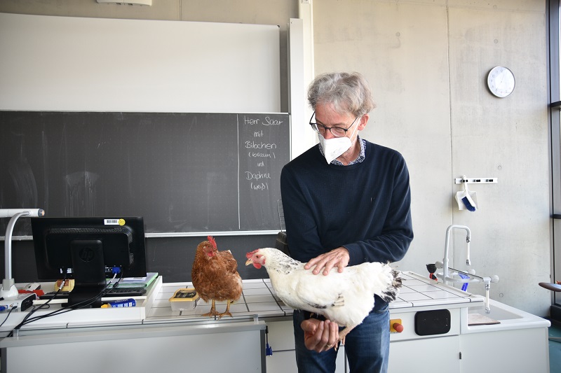 Am 23.03.2022 war im Biologieuntericht der Klasse 5c Herr Saar mit den zwei Hennen Bibchen und Daphne zu Gast.