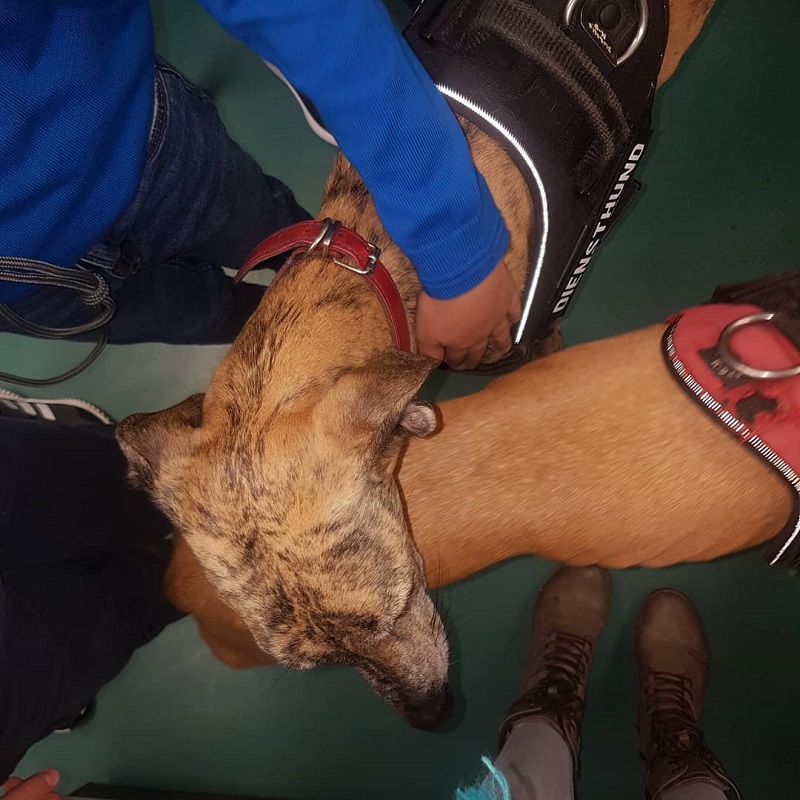 Wenn im BNT-Unterricht in Klasse 5 das Thema "Hund" durchgenommen wird, ist es immer ein besonderes Highlight, wenn Hundetrainerin Jessica Dupont mit ihren beiden Galgos Pepper und Qichotte sowie der kleinen, wuseligen Mischlingshündin Mia zu Besuch kommt.