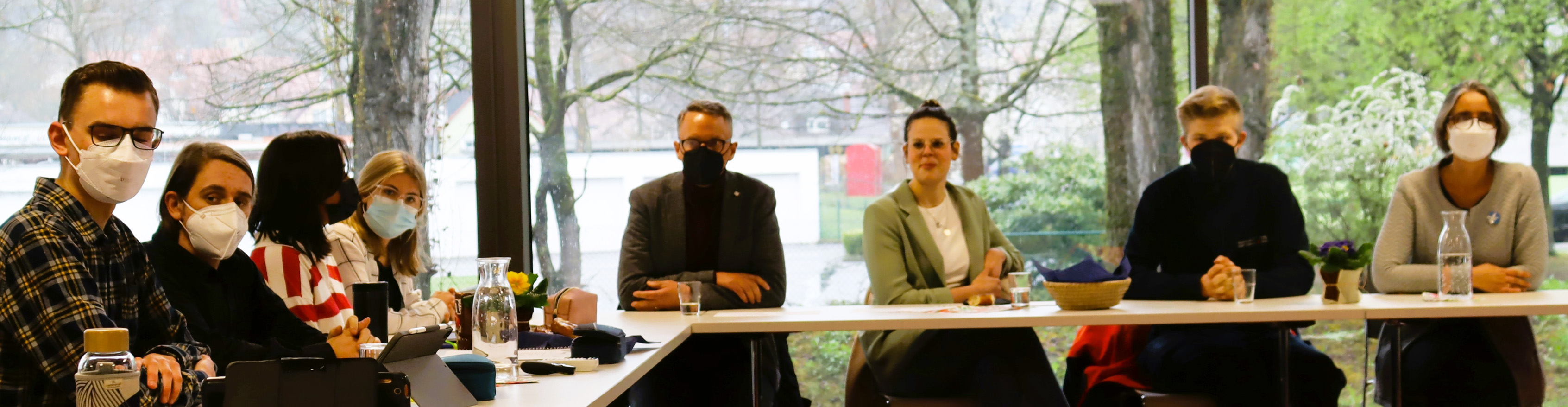 Vorstand und Aufsichtsrat der Schülergenossenschaft: Antje Bohnsack (Schulleiterin und Schriftführerin des Aufsichtsrats), Lukas Möller (stv. Vorsitzender), Vanessa Hoppen (Volksbank Lahr, Vorsitzende des Aufsichtsarats), Nura Bodri (Vorstand), Philipp Freykowski (stv. Schulleiter und Projektbetreuer), Chiara Saban (Vorstand), Aaron Marrek (Vorsitzender des Vorstands) und Oberbürgermeister Markus Ibert (stv. Vorsitzender des Aufsichtsrats)