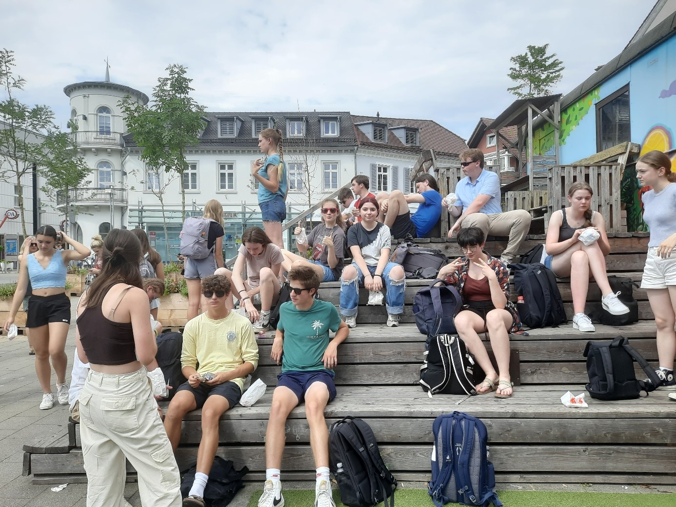 Nach der Ankunft in Stuttgart und einer kleinen Stärkung machten wir uns auf den steilen Weg zum Heidehof-Gymnasium, wo der Wettkampf stattfinden sollte, und Frau Pischinger nutze die Gelegenheit, um dem mitgereisten amerikanischen Austausch-Partner noch ein paar Sehenswürdigkeiten zu zeigen.