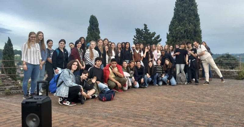 Nachdem wir einen kurzen Sprint eingelegt hatten, um den Zug nach Karlsruhe zu erreichen (Frühsport soll ja sehr gut sein 😊), ging es mit dem Mittagessen im Bauch zum Bismarck-Gymnasium Karlsruhe, wo wir herzlich willkommen geheißen wurden.
