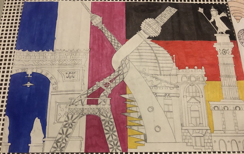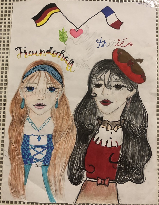 Am 22. Januar 1963 unterzeichneten Charles de Gaulle und Konrad Adenauer den Elysée-Vertrag, der die deutsch-französische Freundschaft nach dem Ende des Zweiten Weltkriegs besiegelte – der Tag wird heute noch als „journée franco-allemande“ gefeiert. Genauso lange besteht tatsächlich schon die Partnerschaft zwischen Lahr und Dole. Im Rahmen der deutsch-französischen Woche vom 22. bis zum 26.1.24 wurde sowohl am Scheffel als auch in Dole fleißig gewerkelt: Es fand ein deutsch-französische Zeichenwettbewerb für alle motivierten Klassen statt, die Arbeiten wurden für eine Woche in der Aula aufgehängt und die besten Arbeiten des Scheffels wurden am 27. Januar nach Dole gebracht: