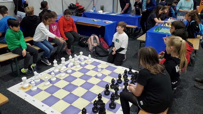 Die grauen Hirnzellen richtig zum Rauchen brachte dann der Stand der Schach-AG, der eine grundsätzliche Einführung ins Spiel für die Anfänger, motivierte und starke Spielgegner für die Fortgeschrittenen und viele mathematische Knobeleien für die Mathe-Cracks bot.