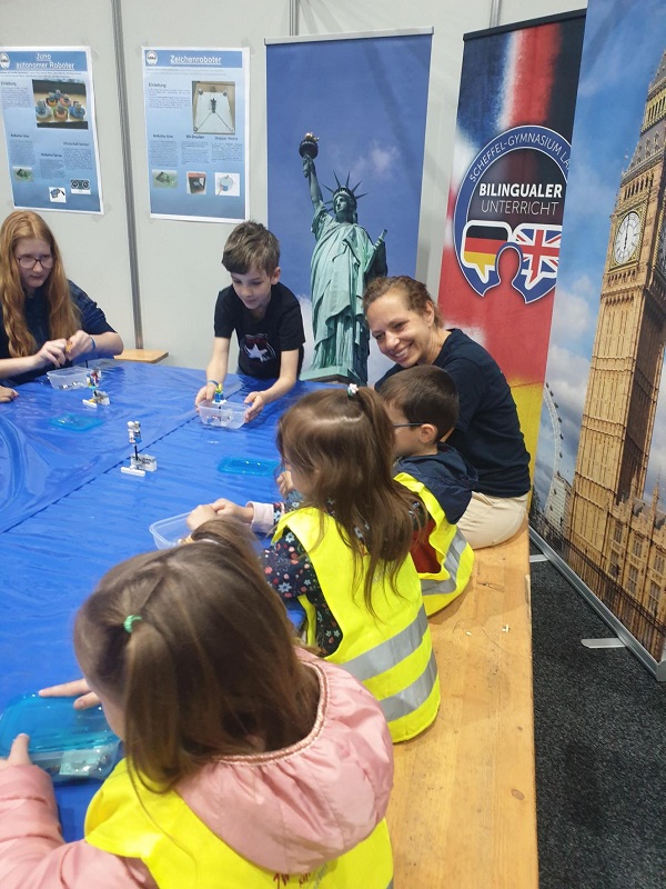 Für die technisch Interessierten waren die Lego-Roboter des Lego League-Teams mit ihren Sensoren spannend. So konnte hier die komplexe technische Nachahmung der biologischen Sinnesorgane bestaunt werden.