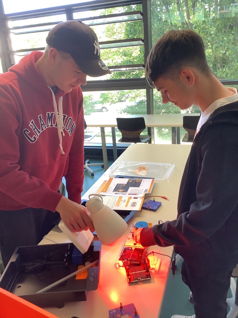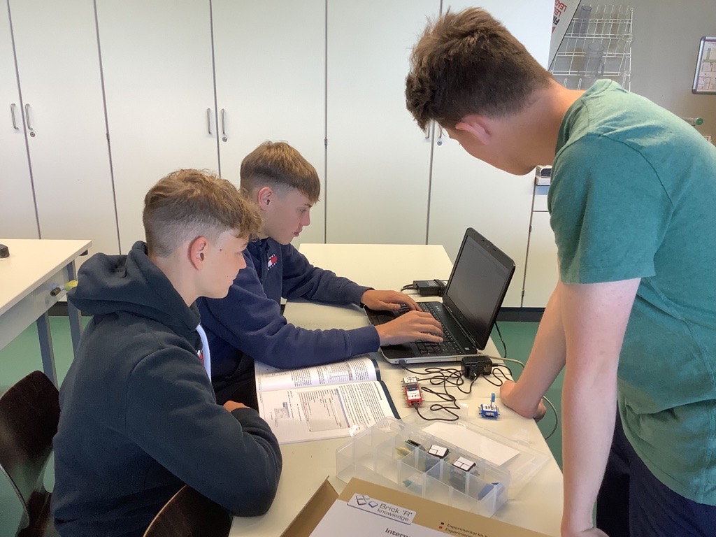 Das Scheffel-Gymnasium hat jetzt solche Fördermaterialien erhalten, in Form von unterschiedlichen Experimentierkästen, die der Schulleitung, beteiligten Lehrer*innen und Schüler*innen am Montag, den 30.5., vom Vorstandsvorsitzenden der Volksbank, Peter Rottenecker, übergeben wurden. Die Schüler*innen setzen die Experimentierkästen mit Begeisterung und Forscherdrang im Physik- oder NWT-Unterricht ein. So können Schaltkreise gebaut, Microcontroller programmiert oder mit Solarmodulen experimentiert werden.
