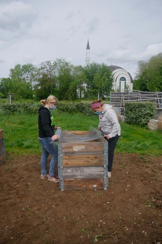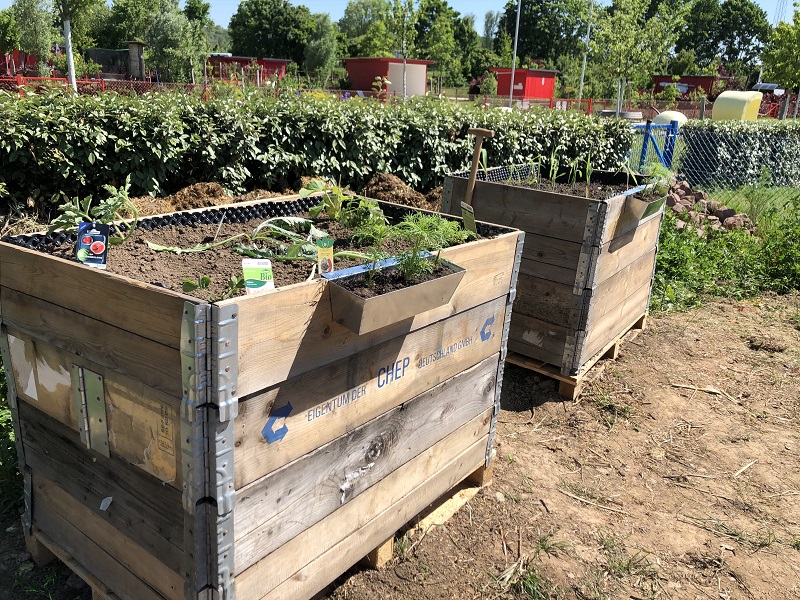 Wir waren in den Pfingstferien fleißig und haben unser drittes Projekt begonnen: Hochbeete. Im Interkulturellen Garten Lahr stehen nun vier Hochbeete für das Scheffel.