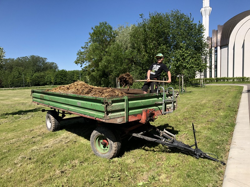 Im zweiten Schritt ging es ans Füllen. Ganz unten kam Reisig und Grünschnitt rein. Dann kam eine Schicht Kuhmist, der uns von Frenks Lindenhof gestellt und sogar persönlich geliefert wurde.