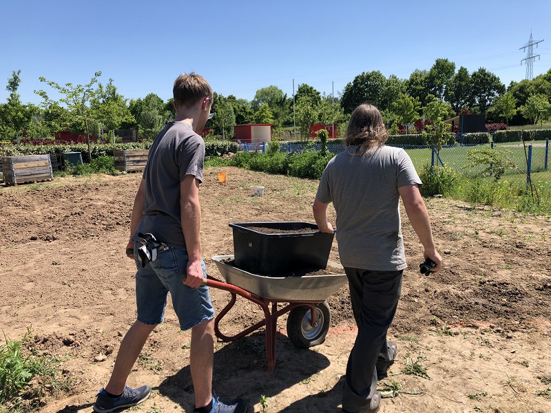 Zum Schluss haben wir den restlichen Platz mit Erde vom BGL aufgefüllt und die Beete bepflanzt. Vielen Dank an die Firma Wagner, die uns hier mit gespendeten Pflanzen unterstützt hat.