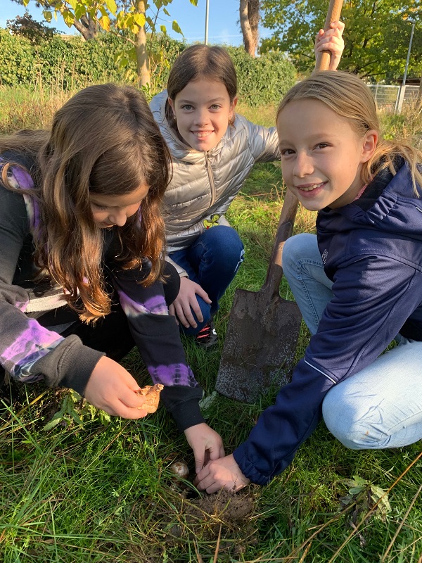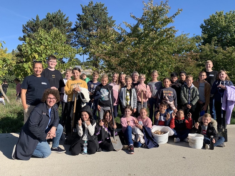 An dieser Pflanzaktion beteiligen sich immer im Herbst viele Lahrer Schulen - wir waren nun schon zum zweiten Mal dabei und haben ordentlich viele vergraben. Beteiligt waren Frau Walz und Frau Billharz mit der 5a, Frau Firgau und Frau mit Grimm mit der 5d, Ben als Schulsprecher und Leon als Vertreter der Eco-School.