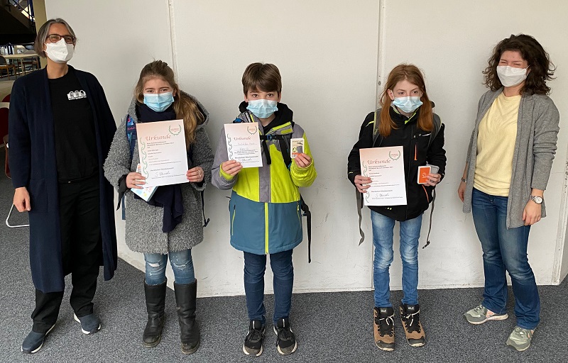In der Klassenstufe 5 erreichten (erste Reihe von links nach rechts) Till Piepenbreier den 2. Preis, Isabell Huschle den 3. Preis, Dilan Baban den 3. Preis, Danny Root den 1. Preis und Per Teßmer 3. Preis in der Schulwertung.