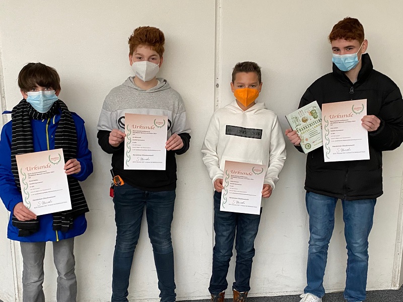 Bei den alten Hasen erreichten Jan Bitterwolf (8c) und Pascal Wahby erneut (und punktgleich) eine Platzierung, diesmal einen 3. Preis in der Landeswertung. Arne Seifert (8c) sicherte sich einen 1. Preis in der Schulwertung.