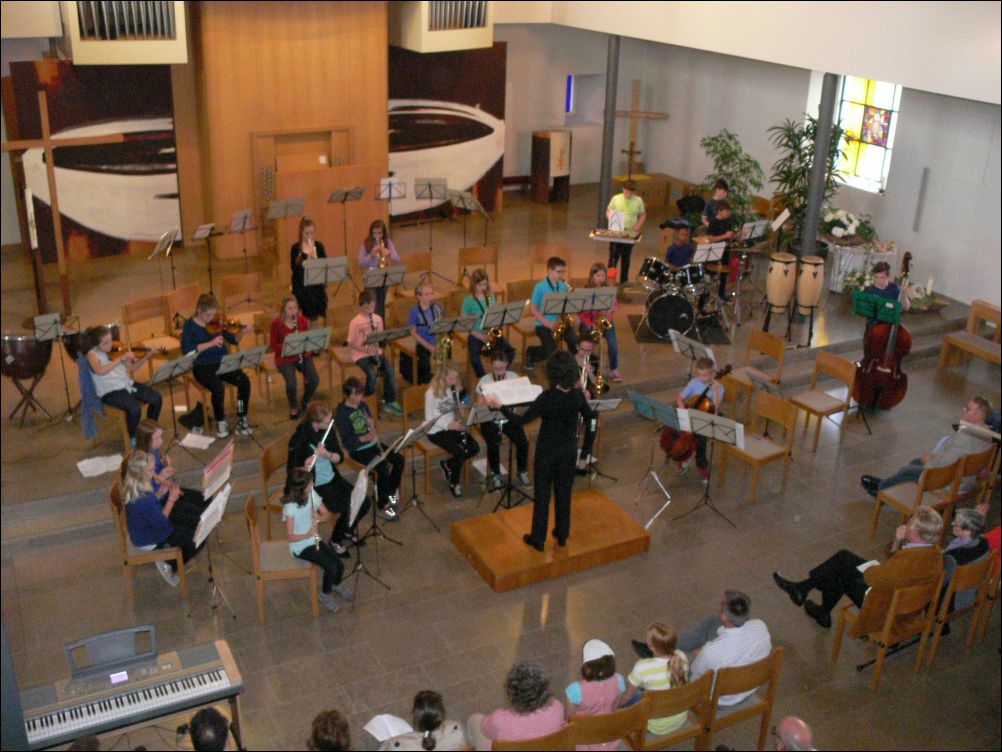 Die gemeinsame musikalische Verantwortung schweißt die Gruppe zusammen, und wenn wir dann auftreten, z.B. in der Weihnachtszeit, beim Jahreskonzert oder auf dem Sommerfest, ist aus dem zusammengewürfelten Haufen ein Klangkörper geworden, der sich hören lassen kann.
