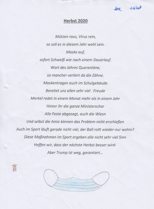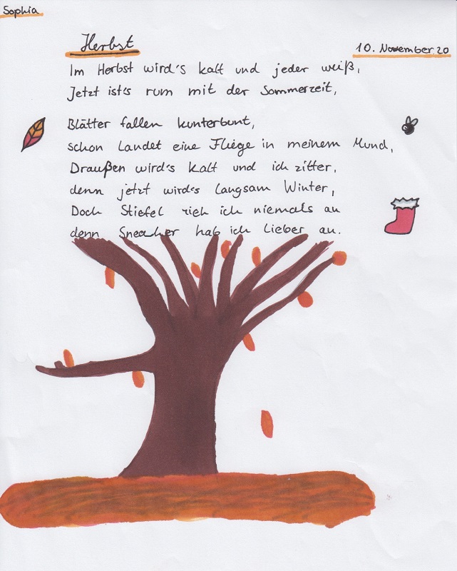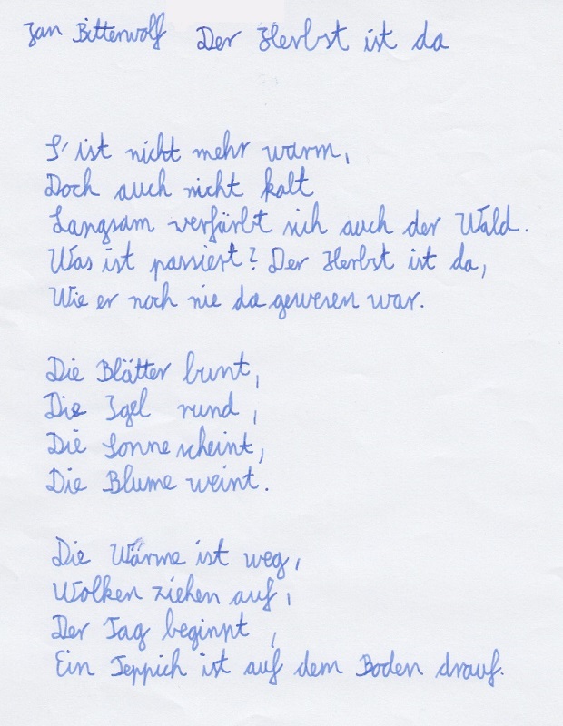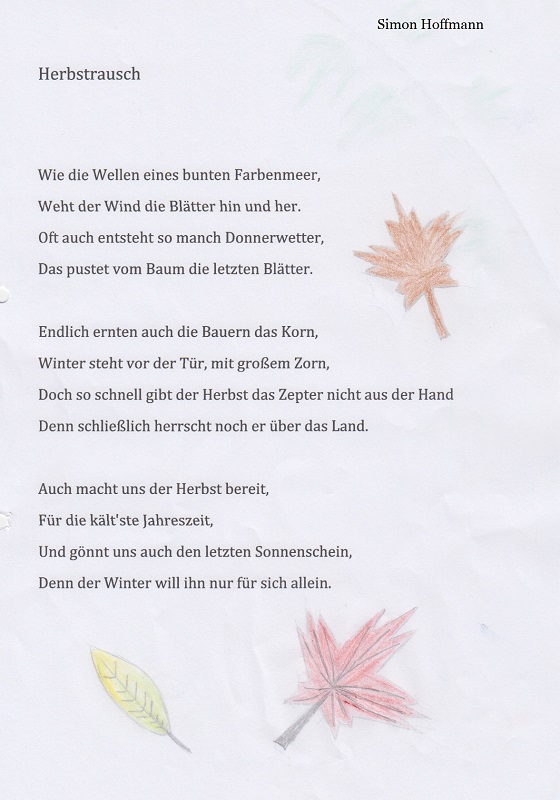 Im Rahmen des Deutschunterrichtes sind in der Klasse 7c einige tolle Gedichte rund um den Herbst entstanden.