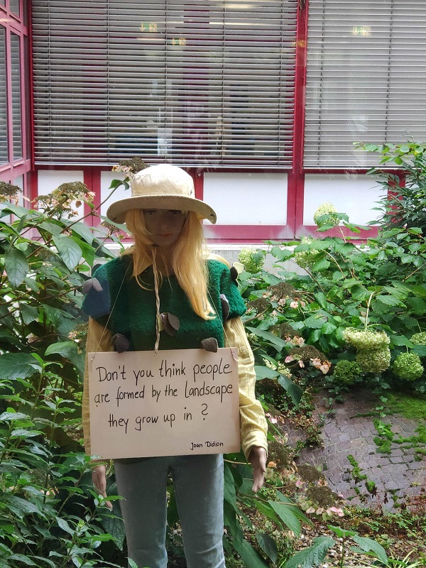 „Milchzähne“ ist Helene Bukowskis erster Roman. Er ist 2019 erschienen, da war die Autorin 26 Jahre alt! Das sagt noch nichts über den Roman? Stimmt wahrscheinlich. Dann lies doch einfach mal rein! In der Aula steht eine grüne Frau mit dem Eingangszitat des Romans und einer Kopie der ersten beiden Seiten.