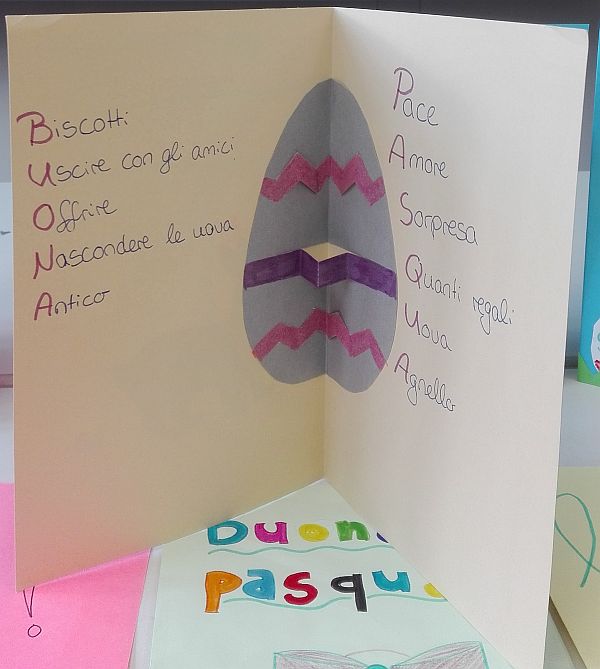 Italienisch-Schüler haben mit Frau Radaelli Grußkarten voller bunter Ostergrüße gebastelt.