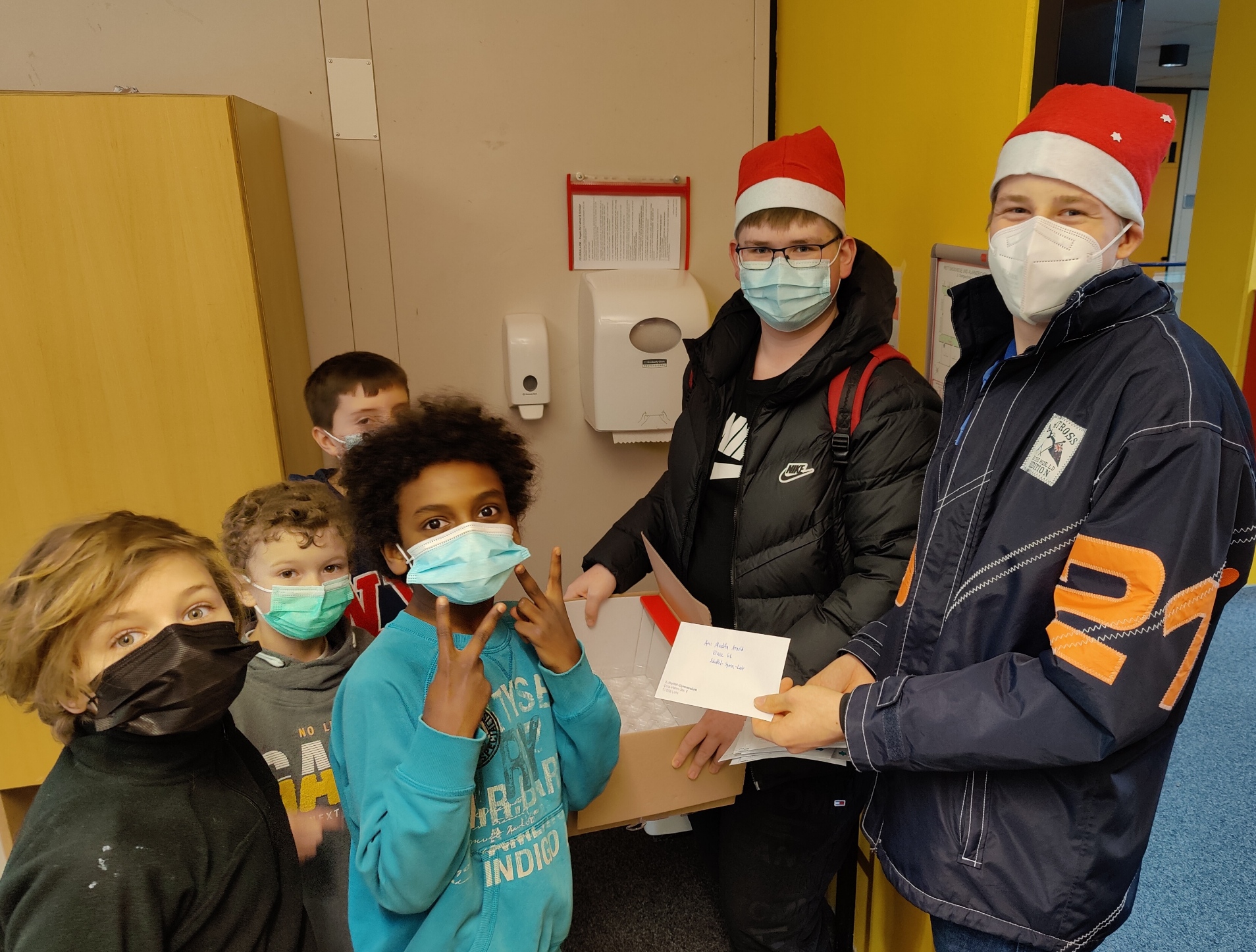 Am 6. Dezember war dann der große Tag und über 850 Grußkarten mussten gemeinsam mit den zugehörigen Schokonikoläusen an ihre Empfänger verteilt werden. Dies übernahm das Team der SMV-AG unter Leitung des Schülersprecher*innen-Teams. So konnten sich Schülerinnen, Schüler und Lehrer über einen süßen Gruß verbunden mit einer Botschaft freuen.