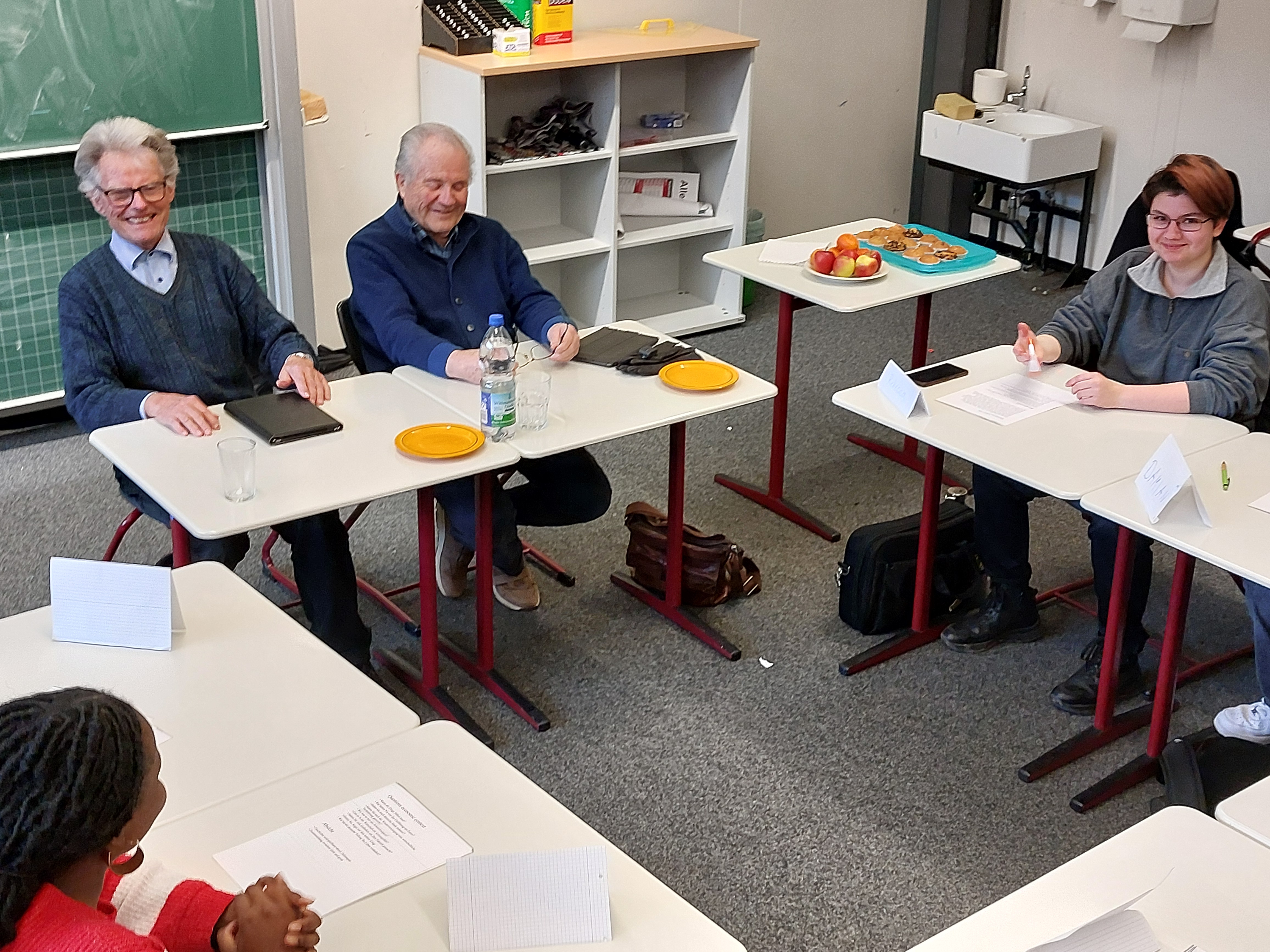 Die Zeitzeugen im Gespräch mit Schülerinnen der 10. Klasse