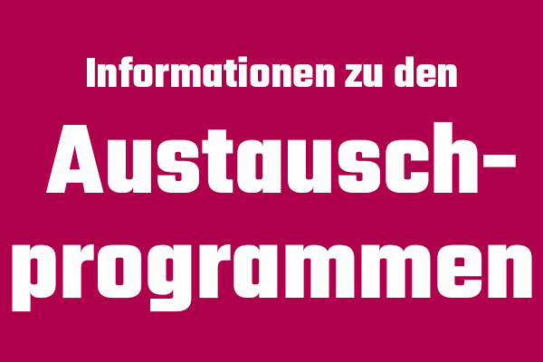viele von Ihnen fragen sich wahrscheinlich, wie angesichts der aktuellen Lage der Status unserer zahlreichen Austauschprogramme ist. Wir möchten Ihnen hier eine Übersicht geben. Sollten Sie noch Fragen haben, so melden Sie sich bitte per E-Mail unter Diese E-Mail-Adresse ist vor Spambots geschützt! Zur Anzeige muss JavaScript eingeschaltet sein!.