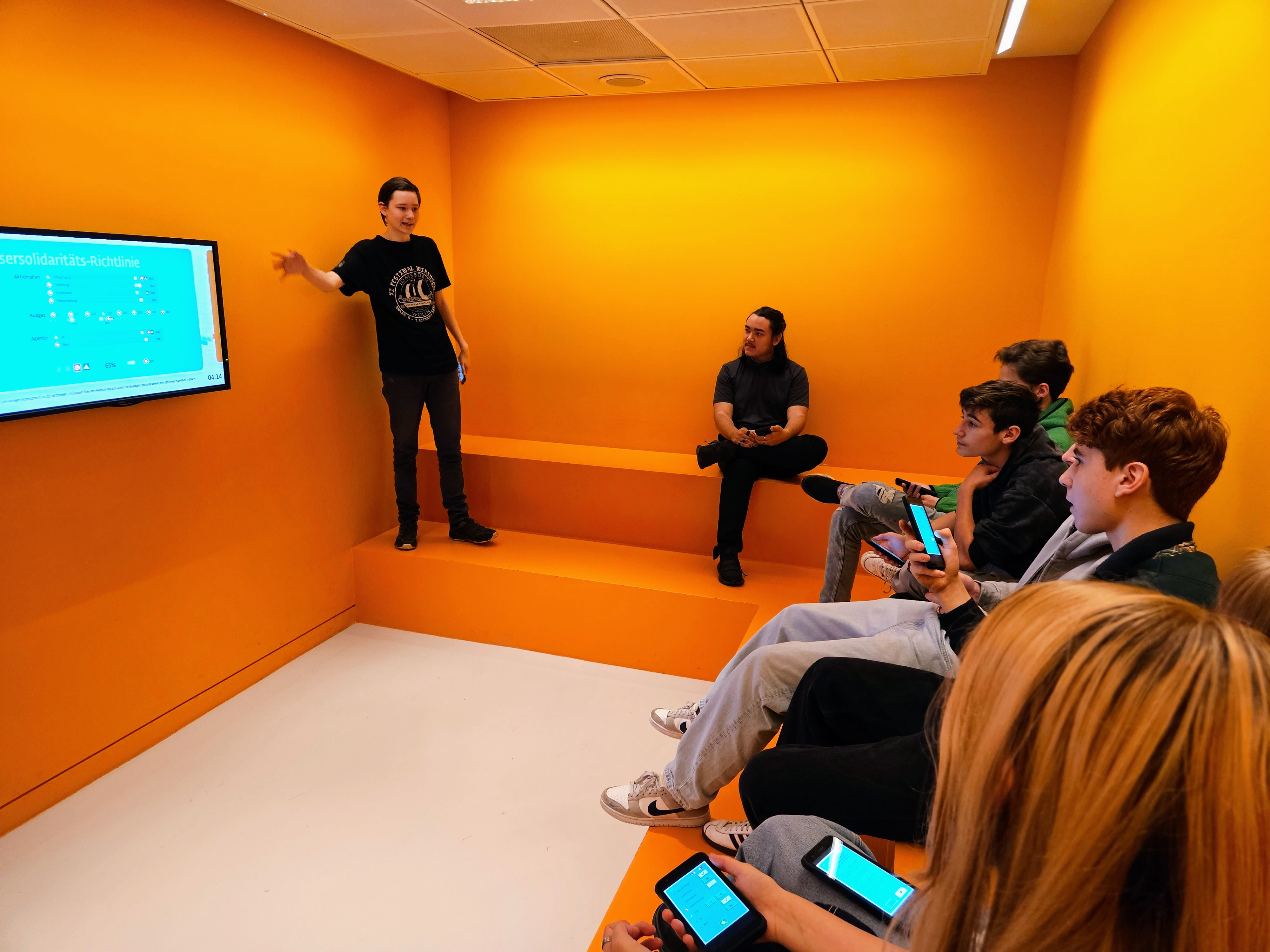 Im Schulcurriculum des Scheffel-Gymnasiums ist der Besuch verankert, weil „wir auf diese Weise Kompetenzen des Alltags fördern können. Freies Sprechen, debattieren, Kompromisse finden – all dies sind Stärken, die unsere Schüler:innen bei uns lernen“, erläutert der Gemeinschaftskundelehrer der Klasse, Philipp Freykowski, die Motivation für den Besuch.