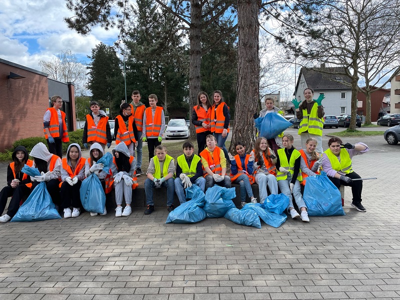 Am Mittwoch, den 6.4. haben unsere Klassen 7b von Frau Barz und Klasse 9c von Frau Poster bei der Kreisputzete mitgemacht und allerhand Müll aufgesammelt: sehr viele Kippen, Batterien, leere Bierdosen, altes Filmmaterial, einen eingewachsenen Teppich... Faszinierend, was Menschen so alles wegschmeißen!