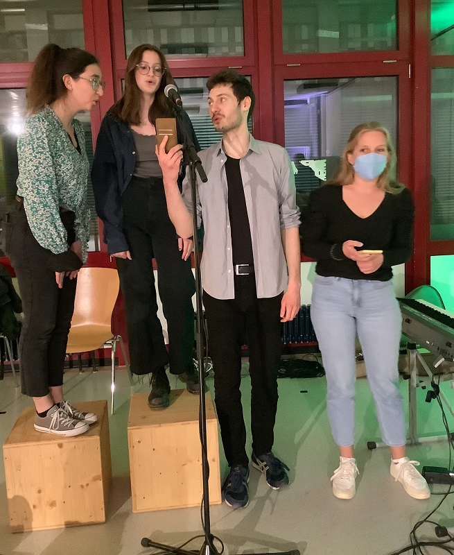 So fanden sich etliche ehemalige und aktuelle Schüler*innen, Kolleg*innen, Referendar*innen und Hausmeister am 25. März im zur Aula hin geöffneten R108 zusammen und gruben von alten Chorstücken über Lagerfeuerlieder mit Landschulheimfeeling bis hin zu aktuellen Popsongs alles aus, worauf man gerade so Lust hatte.