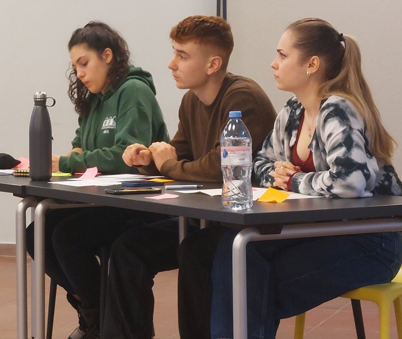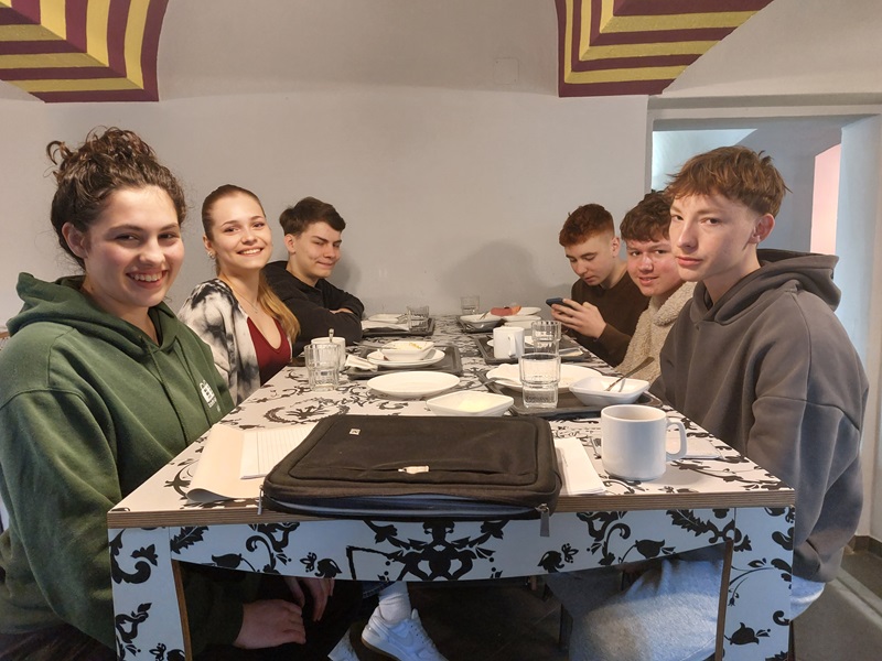 In den angeregten Diskussionen und Recherchen ging es um ChatGPT und den Nutzen von Kunst in der Gesellschaft. Inmitten von Büchern, Notizblöcken und IPads setzte sich das Scheffel-Team, bestehend aus Alexia Stefan, Ajla Omicevic, Arne Seifert, Mantas Koch, Lukas Valendor und Georgiy Pamaranov intensiv mit ihren Argumenten auseinander und feilten an ihren Strategien, um in der Debatte das Beste zu geben.