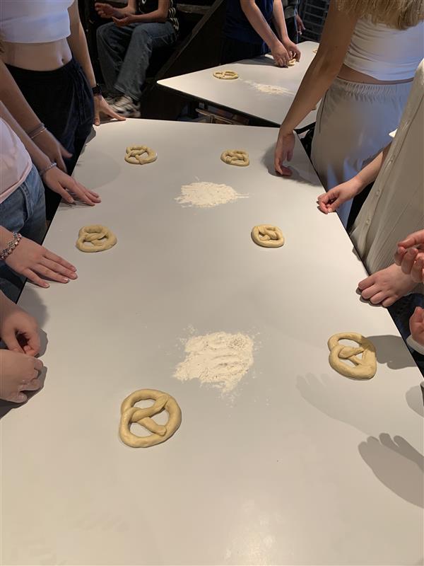 Danach begaben wir uns ins „La Maison du Pain“, wo wir mit einem sehr sympathischen Bäckermeister süße Brezeln und Weckmänner - auf Elsässisch “Mannele” und auf Französisch “bonhomme en brioche” genannt - backen durften.