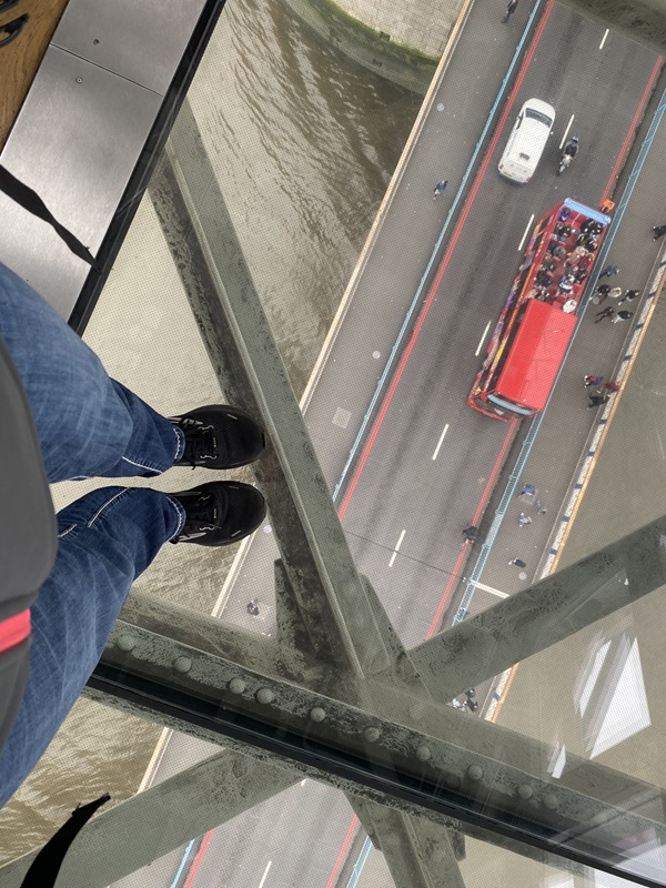 Montag, der erste Tag in London. Ein volles Programm wartet auf uns. Wir starten den Tag mit einer Bootsfahrt auf der Themse von Greenwich zur Tower Bridge. Schon von Weitem sieht man das markante Wahrzeichen der Stadt, aber der Höhepunkt für die meisten ist auf der Towerbridge selbst der Glasboden in 42m Höhe, durch den man direkt hinunter auf die Straße und den Fluss blicken kann – nichts für schwache Nerven!