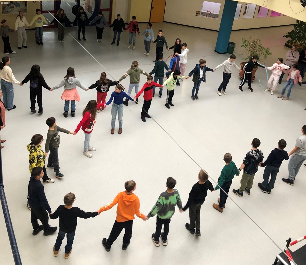 Besonders beliebt waren die tollen Spiele, wie ein Wettrennen mit dem Reifen, bei dem viel gelacht wurde. Auch eine Schulhausrallye stand auf dem Programm, bei der die französischen Gäste auf spielerische Weise die Schule erkunden konnten.