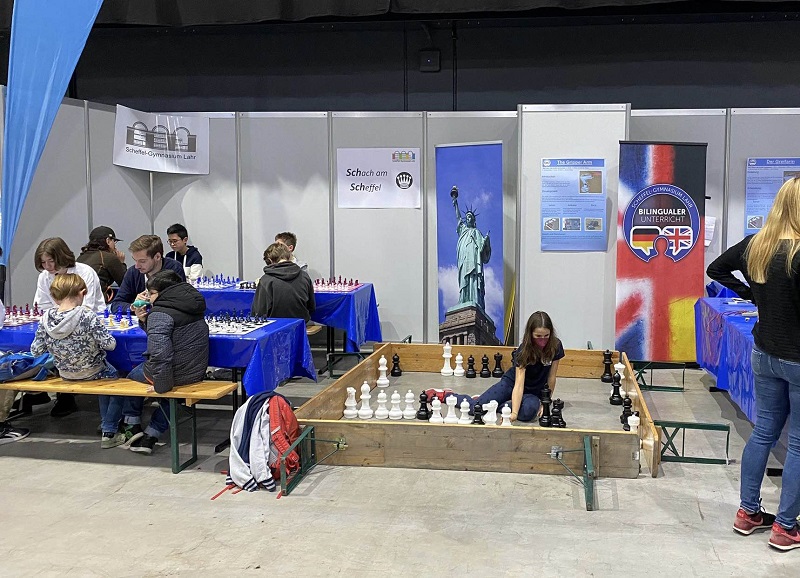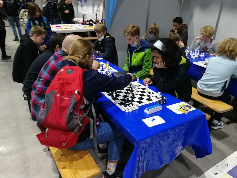...sah man auf der anderen Seite des Standes hochkonzentrierte SchülerInnen in spannende Partien versunken: