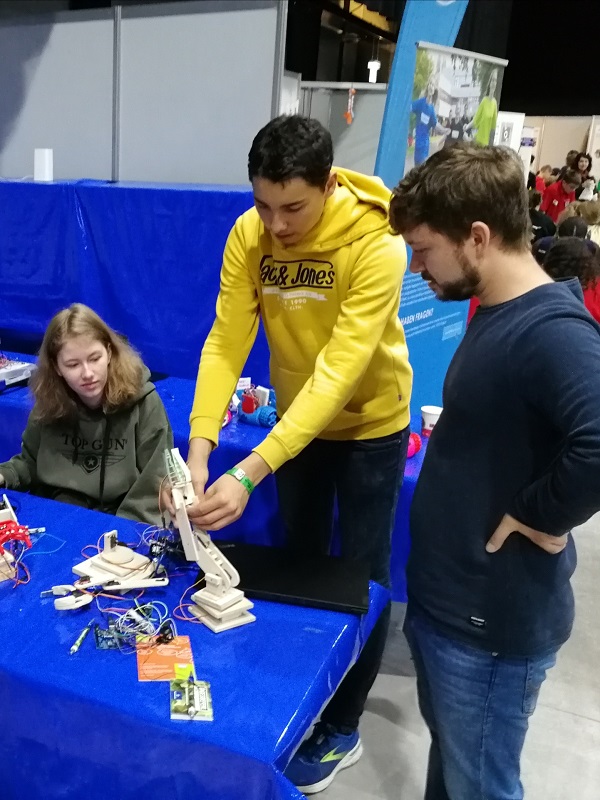 Aufgrund der spontanen Hilfe des Leiters der Schach-AG, Herrn Bernd Emmelmann, gelang dies auch überzeugend. Während also in guter Tradition die selbstgebauten Roboter-Modelle vorgeführt und erklärt wurden...