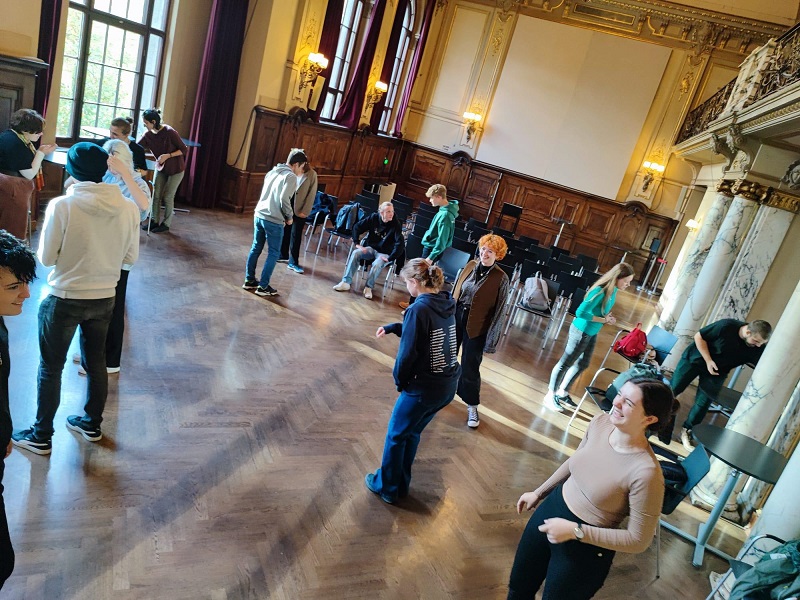 Das Besondere an diesem „Coming-of-Age“-Dramas war, dass sich die Zuschauer bewegen mussten. Man musste schnell sein, um alles zu sehen, was die Schauspielere taten. Der Ton wurde über Kopfhörer übertragen. Nach dem Stück hatten wir die Gelegenheit, mit den beiden Darstellenden zu sprechen, die uns einiges über diese doch etwas andere Art des Theaterspielens erzählten. Vielleicht probieren wir diese Art von Stück selbst mal aus.
