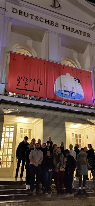 Am Abend fanden wir uns im Deutschen Theater ein. Eigentlich hätten wir Molières „Der Meschenfeind“ gesehen, doch es waren einige Schauspieler krank. Deshalb wurde „Der zerbrochene Krug“ von Heinrich von Kleist gezeigt. Bei diesem Stück rund um eine Gerichtsverhandlung haben wir alle Tränen gelacht.