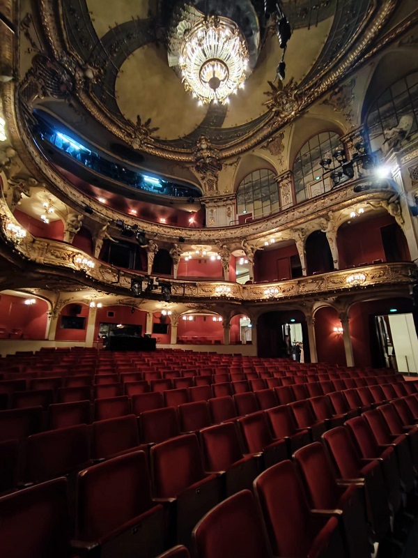Davor machten wir aber einen Audiowalk zu Brecht. Er dauerte eine Stunde und führte uns vom Dorotheenstädtischen Friedhof, neben dem auch Brechts Wohnung lag, zurück zum Berliner Ensemble, diesem wunderschönen, mit roten Plüschsesseln, opulenten Bemalungen und vergoldeten Schnörkeln ausgestattete Theater, das 1949 von Bertolt Brecht gegründet wurde.