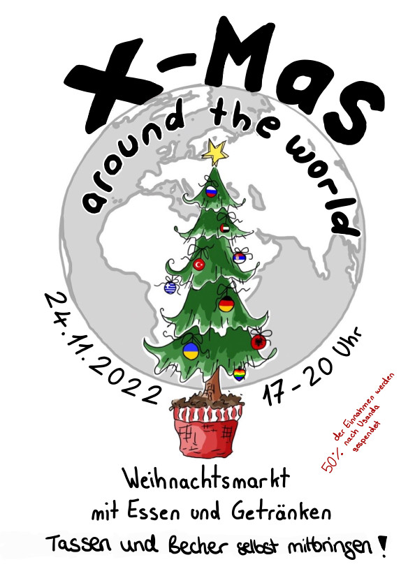 Unter dem Motto „X-mas around the world“ bereiten die Klassen 8-10 Essen aus verschiedenen Kulturen und Ländern vor und es gibt ein buntes Programm. Außerdem kann man kreative, liebevoll selbstgebastelte Dinge erwerben, die sich auch wunderbar als Weihnachtsgeschenk eignen. Die Hälfte des gesamten Erlöses wird an unser Hilfsprojekt Our Children And Our Future e.V. gespendet.