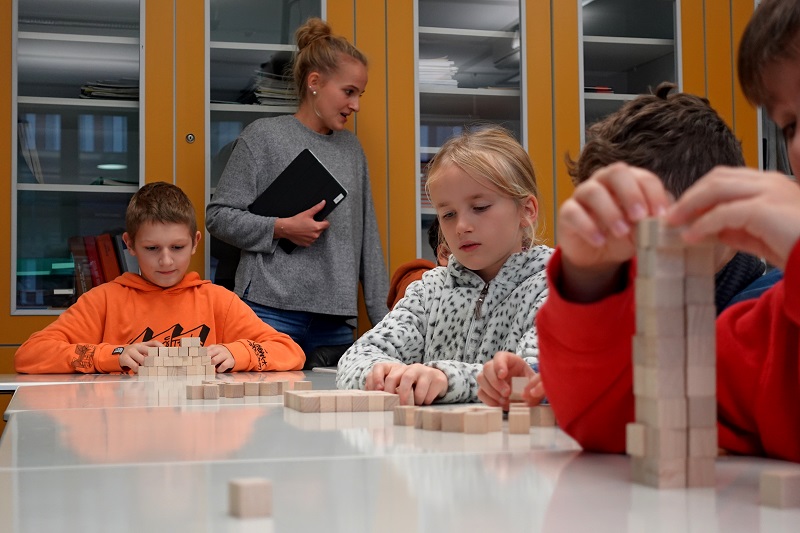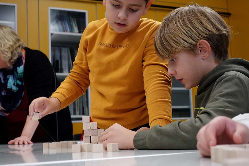 Am 14. November war die Klasse 4a der Eichrodtschule zu Gast am Scheffel. Gemeinsam mit ihrer Klassenlehrerin Frau Moelter-Reich und der Schulleiterin Frau Franz durfte die Klasse erfahren, wozu 3D-Drucker in der Technik und am Gymnasium eingesetzt werden. Dann waren die Schülerinnen und Schüler an der Reihe: Mit Holzklötzen sollten sie zunächst so arbeiten, wie ein 3D-Drucker – Schicht für Schicht.
