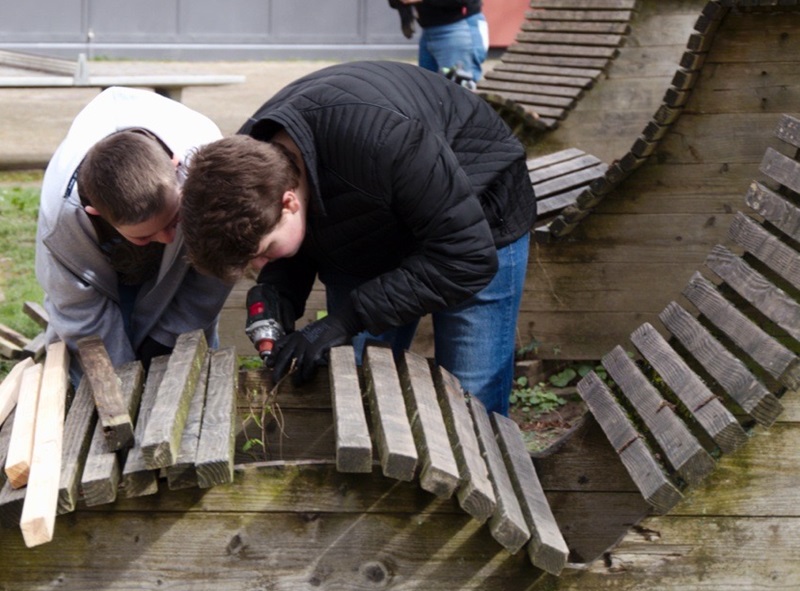 Samstags an der Schule? Warum nicht! Unter der Regie von Herrn Antonacci, der mit seinem Know-how und natürlich durch seine tatkräftige Unterstützung das Liegen-Reparatur-Projekt der SMV-AG bravourös anleitete, laden nun wieder unsere Liegen zum Entspannen in den Pausen ein.
