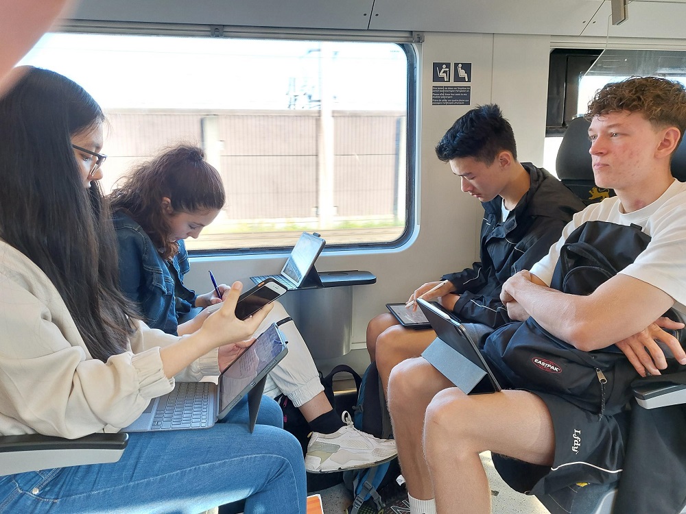 Nach der Ankunft in Stuttgart und einer kleinen Stärkung machten wir uns auf den steilen Weg zum Heidehof-Gymnasium, wo der Wettkampf stattfinden sollte, und Frau Pischinger nutze die Gelegenheit, um dem mitgereisten amerikanischen Austausch-Partner noch ein paar Sehenswürdigkeiten zu zeigen.