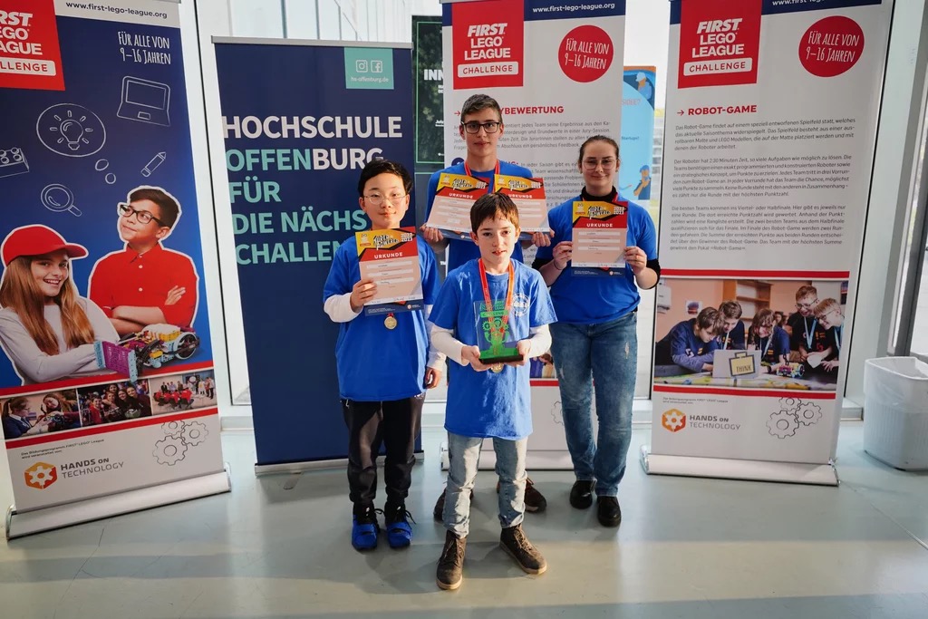 Nach dem Gewinn des regionalen Qualifikationsturniers in Offenburg durften Angelina Kaltenbach, Ronya Shamsani, Isabell Huschle und Charlotte Rapp nun zu den Südbadischen Schulschach-Meisterschaften nach Küssaberg fahren. Begleitet durch den Leiter der Schach-AG, Bernd Emmelmann, und die Lehrerin Selina Müller hofften sie dort natürlich auf weitere Erfolge. Doch die starken Gegnerteams zeigten dem Team schon früh, dass nun die Trauben höher hängen würden. Am Ende konnten sich die vier jedoch mit dem dritten Platz für die Badischen Meisterschaften qualifizieren und stolz den zweiten Pokal innerhalb weniger Wochen mit nach Hause nehmen. Ein toller Erfolg für die junge Mannschaft und die Schach-AG um Bernd Emmelmann!
