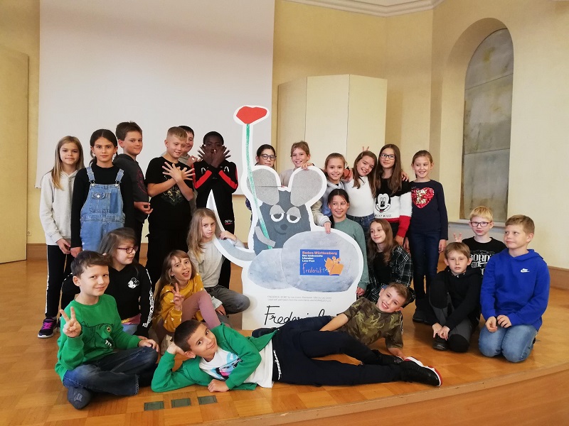 Anlässlich der diesjährigen „Fredericktage“, des landesweiten Literatur-Lese-Festes, hatten sich die Kinder auf eine Autorenlesung gefreut. Leider jedoch war die Autorin kurzfristig erkrankt und so musste das Programm spontan geändert werden: Die Maus Frederick ist persönlich eingesprungen und hat unsere Fünftklässler*innen in der Mediathek willkommen geheißen!