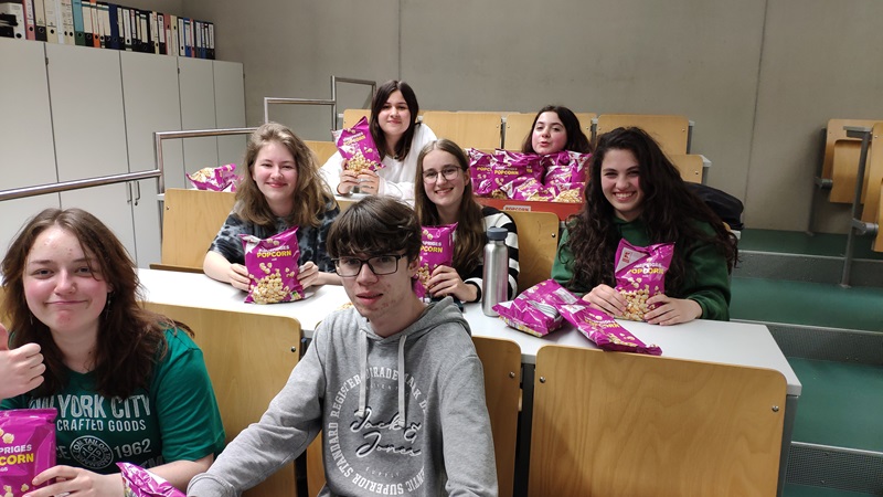 Es heißt, in R 247 werde auch Physik unterrichtet. Kann man machen, aber als Kinosaal ist der Raum wirklich unschlagbar! Das Publikum war handverlesen, gut gelaunt, diskussionsfreudig und bestens mit Popcorn versorgt, als Fabian und Veronika aus der K1 am Montagabend, 06. Mai ihre GFS als Kinoereignis gestalteten: Sie führten „Hüter der Erinnerung“ vor, mit anschließendem Vortrag und Filmgespräch. Dystopie oder Utopie? Für den Film schnell entschieden: Dystopie. Für den Abend genauso: Utopische Verhältnisse, wenn sich fröhliche Menschen abends in der Schule treffen, um gemeinsam einen Film zu schauen und sich engagiert darüber zu streiten. Fortsetzung sollte folgen!