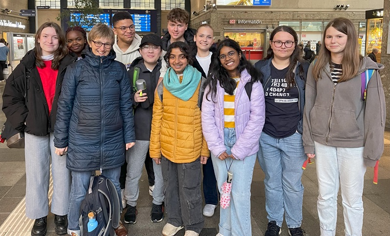 Nachdem wir einen kurzen Sprint eingelegt hatten, um den Zug nach Karlsruhe zu erreichen (Frühsport soll ja sehr gut sein 😊), ging es mit dem Mittagessen im Bauch zum Bismarck-Gymnasium Karlsruhe, wo wir herzlich willkommen geheißen wurden.